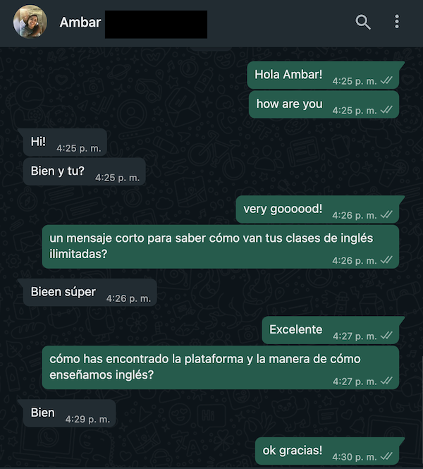 Adicional a esto las actividades en la plataforma interactiva son cápsulas con la información precisa y en complemento con las clases de conversación son una herramientas bastante potente.