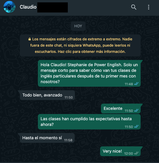 Revisa las opiniones de los estudiantes de Power English nuestros estudiantes que han tomado clases particulares y grupales con nuestra metodología.